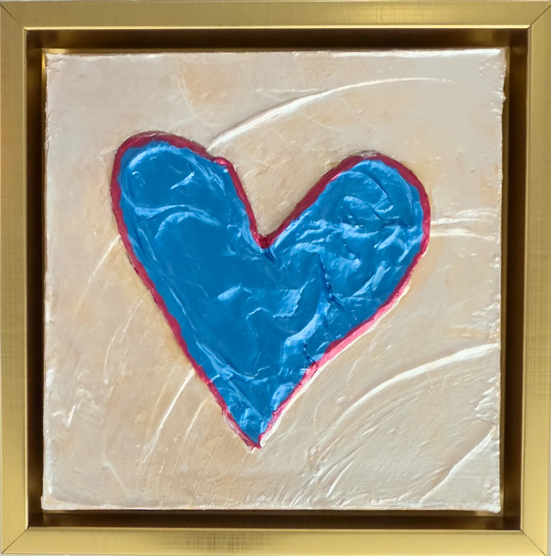 5” x 5” pearl white textured canvas with raised blue heart trimmed in red
