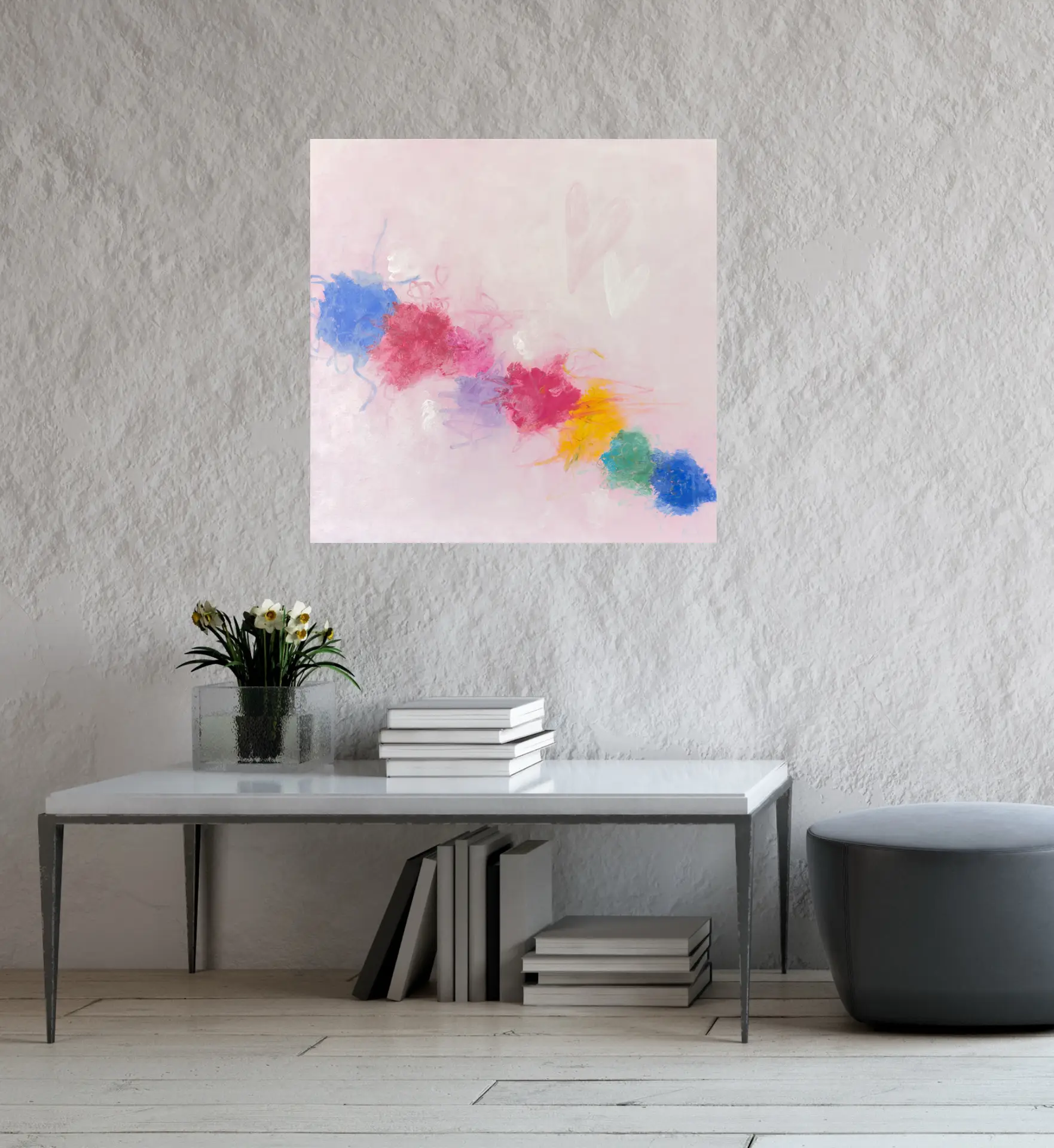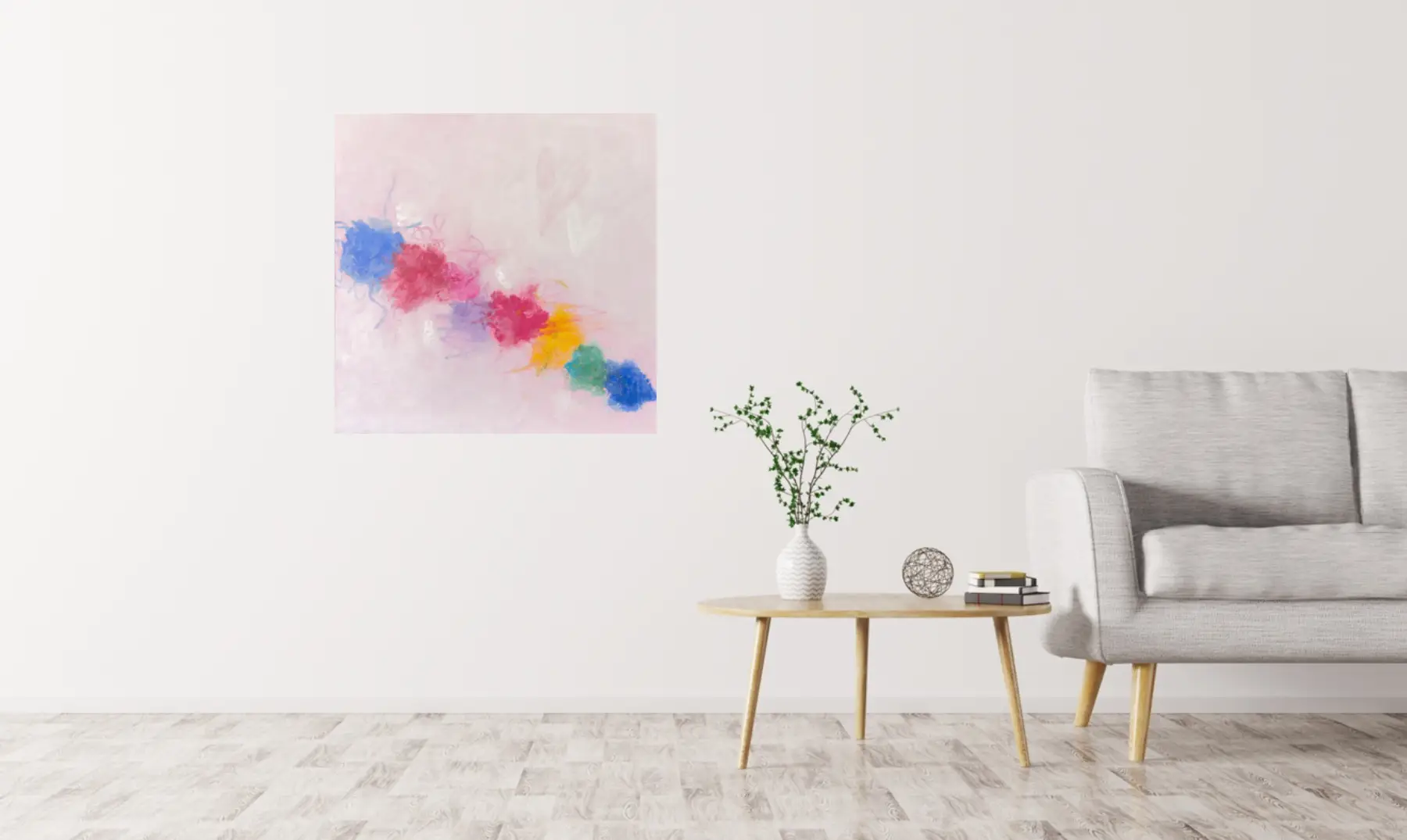 30″ x 30″ canvas 1 1/2″ depth in white floater frame