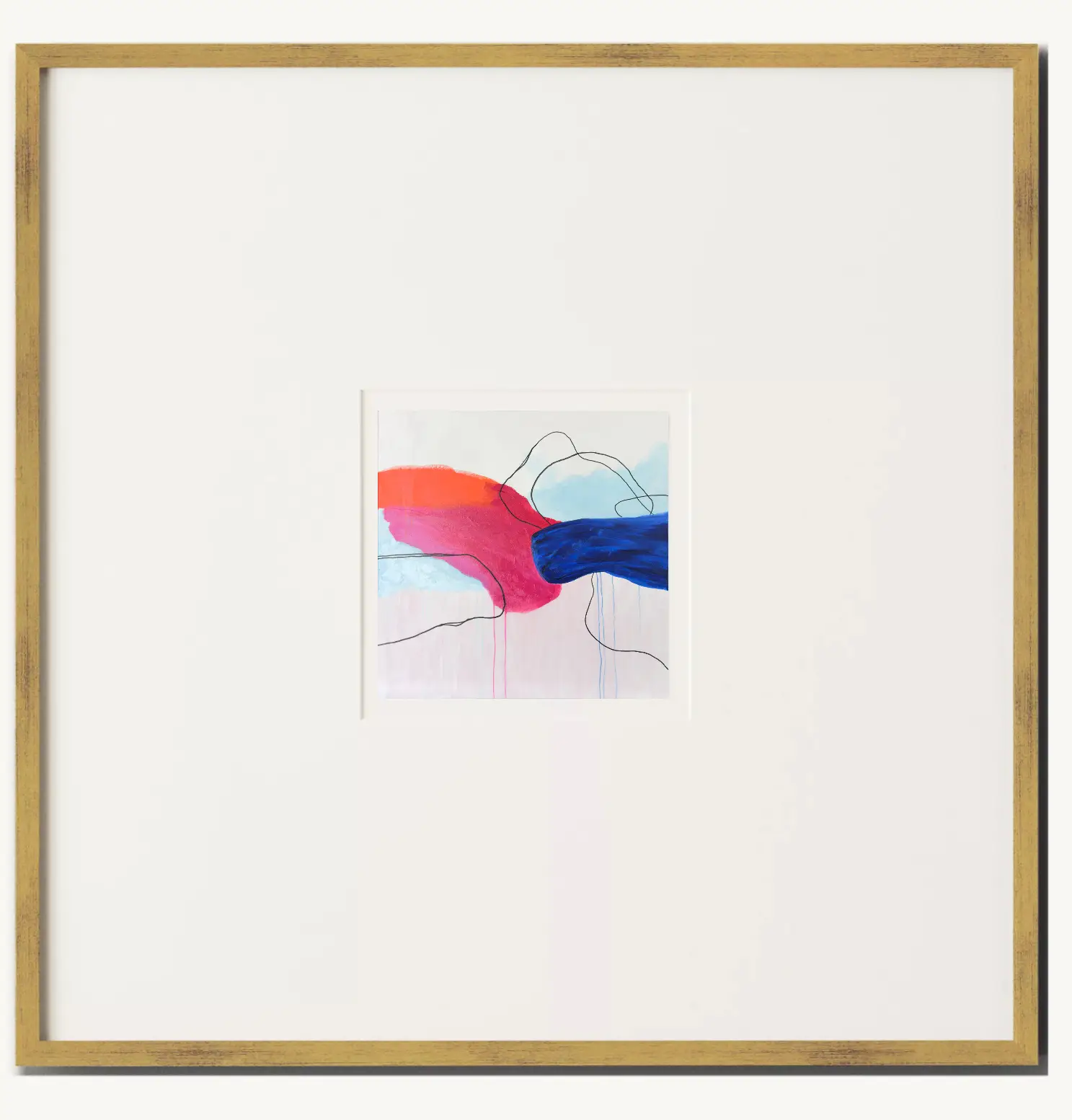 30″x 30″ gold frame with white mat